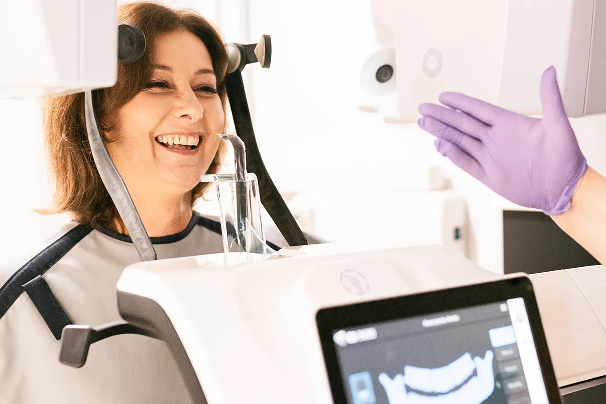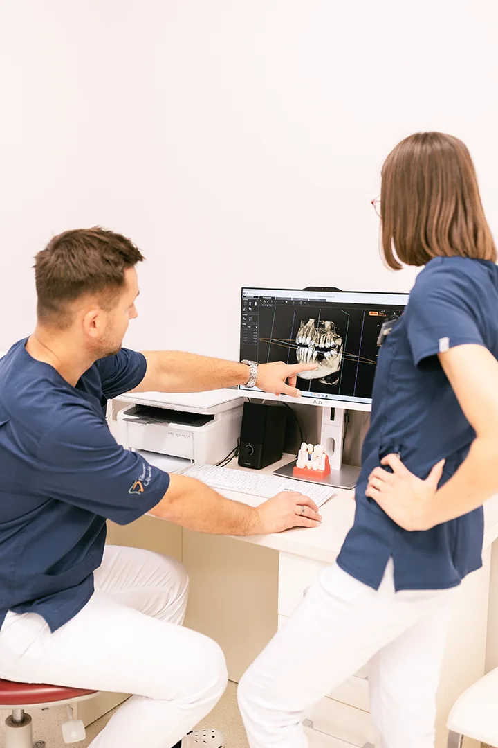 Każdy proces leczenia rozpoczynamy od dokładnej rozmowy z Pacjentem oraz badania klinicznego na fotelu. Badania diagnostyczne – takie jak RTG, tomografia CBCT czy skan 3D – są narzędziami pomocniczymi, które pozwalają potwierdzić diagnozę i precyzyjnie zaplanować dalsze leczenie.