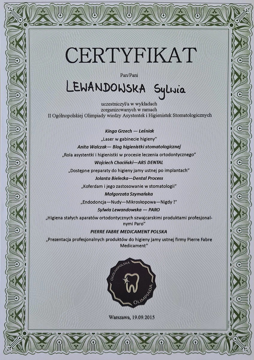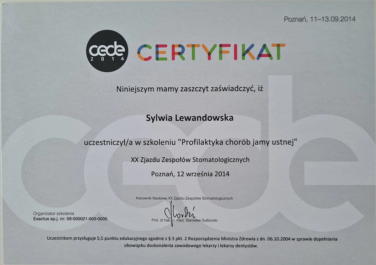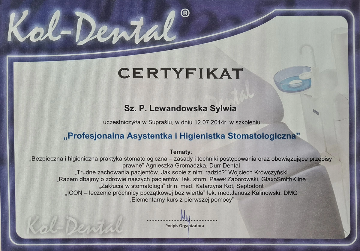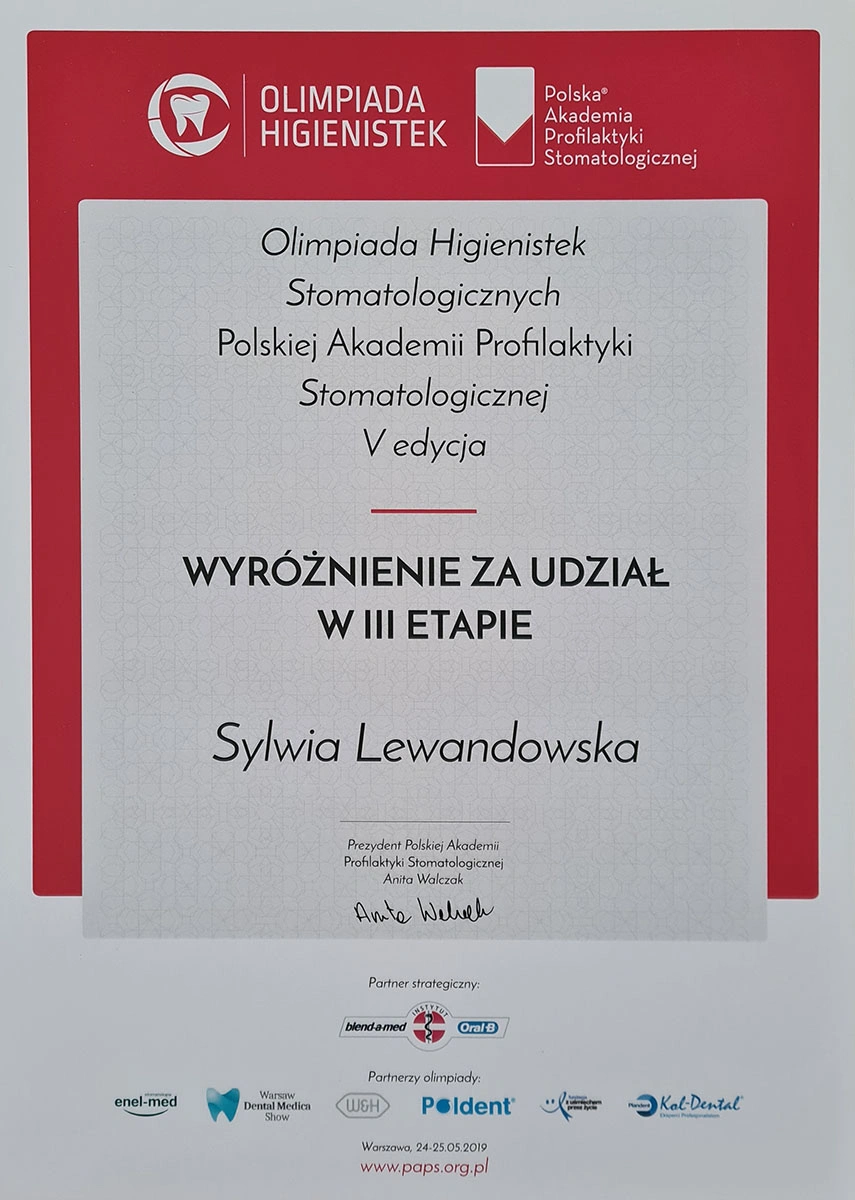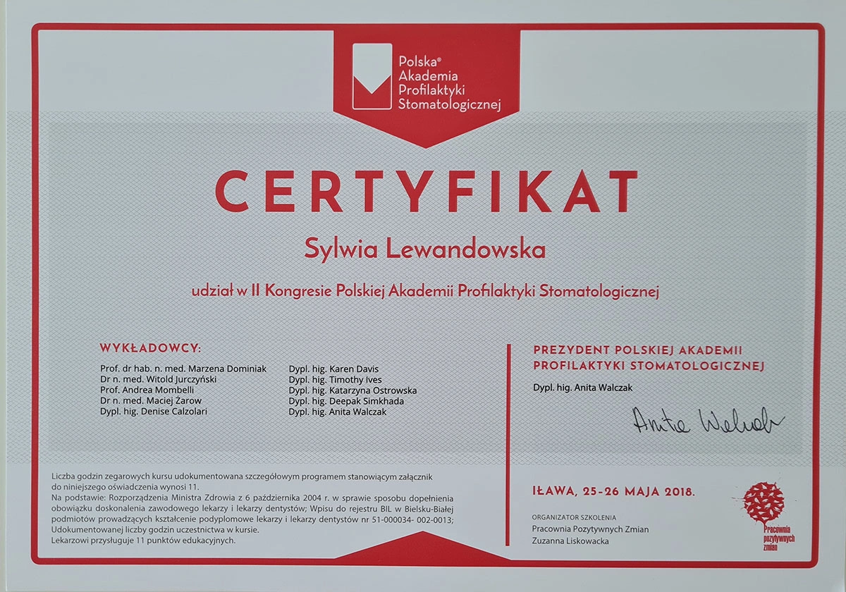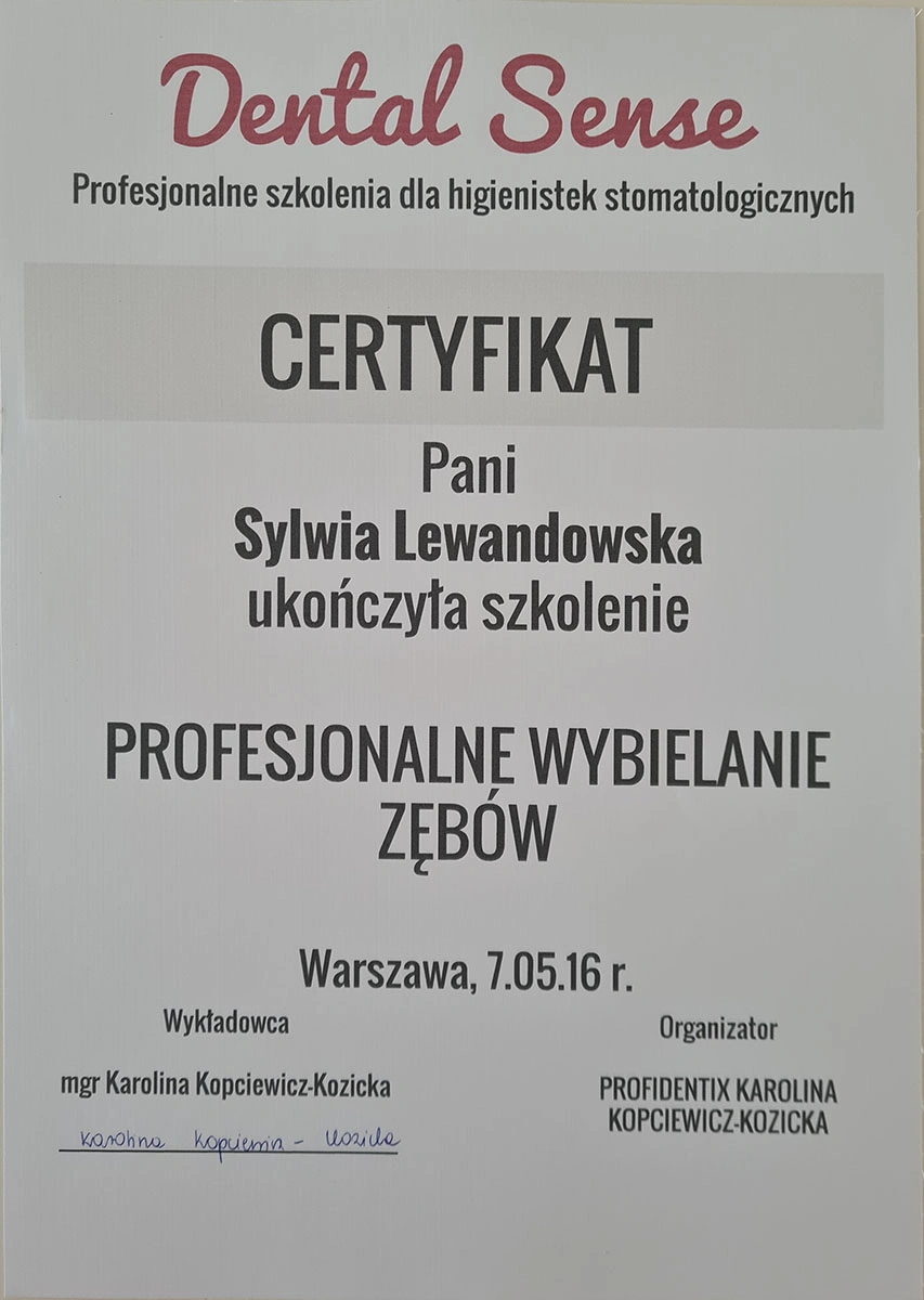 Sylwia has completed numerous specialist courses, and focuses on empathy, authenticity and an individual approach in her work. As she herself emphasises, taking care of your teeth is not only a matter of aesthetics, but, above all, the health of the whole body.