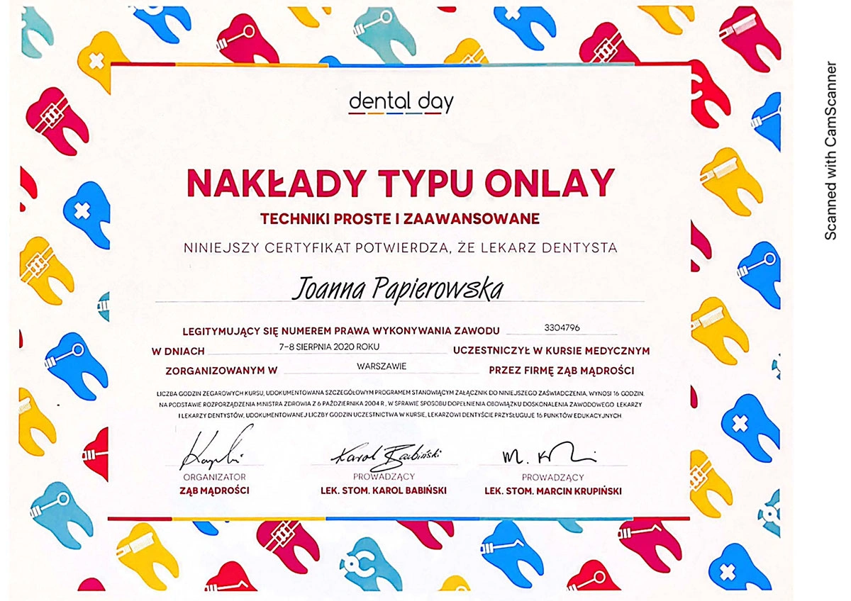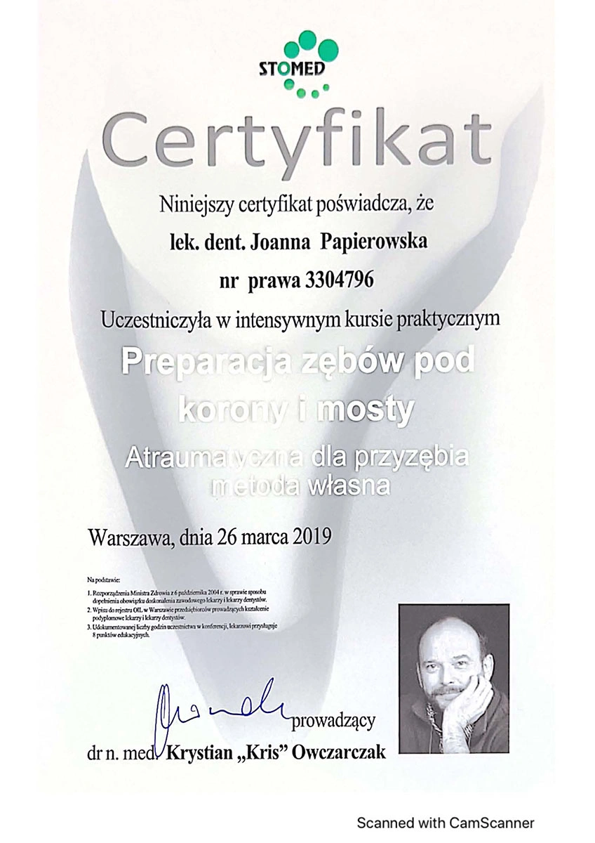 Na co dzień zajmuje się również kompleksowym leczeniem zachowawczym oraz leczeniem kanałowym z użyciem nowoczesnych metod. Pacjenci cenią ją za empatię, przyjazne usposobienie i doskonały kontakt.